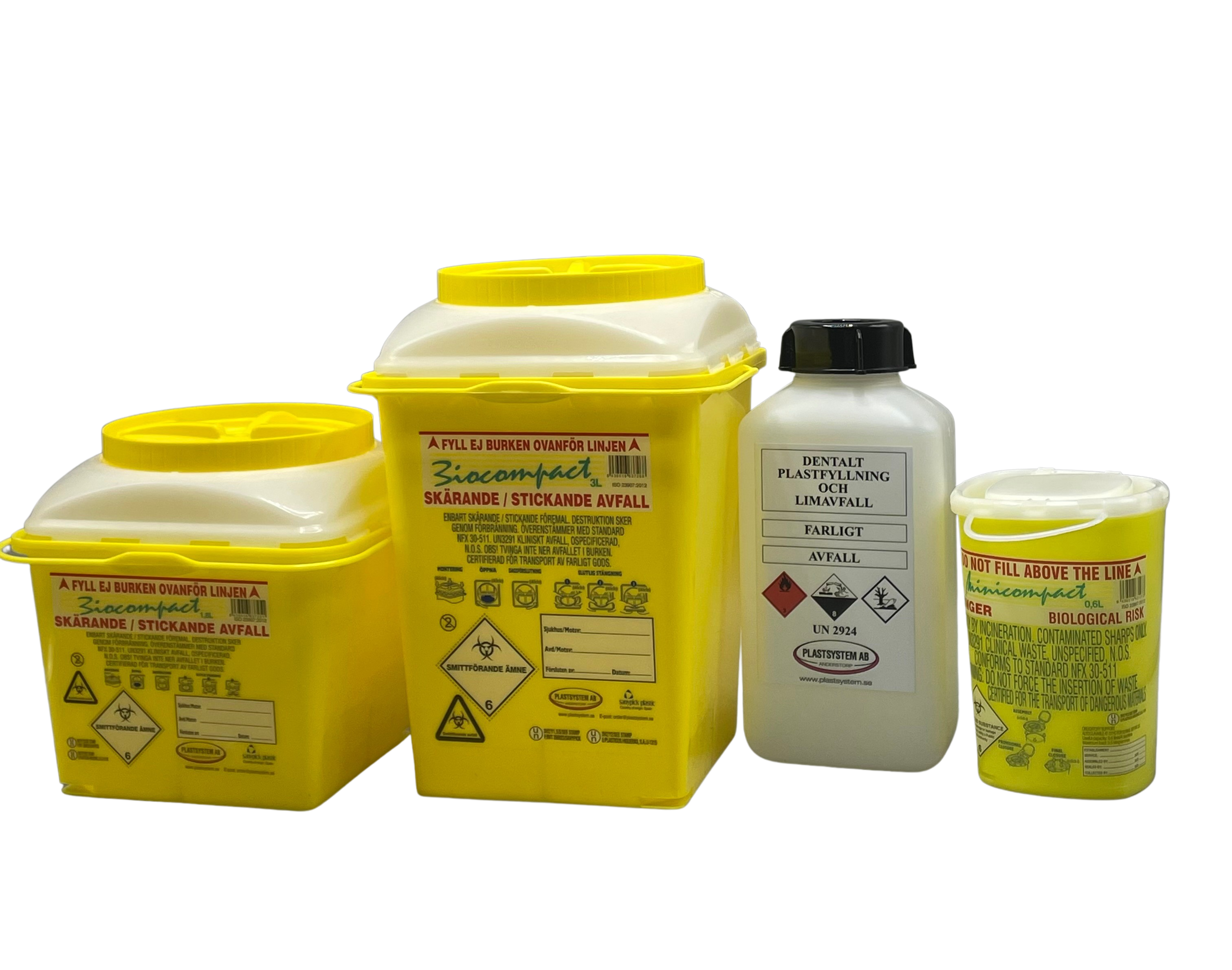 Inom tandvårdssektorn krävs täta emballage som inte påverkas av innehållet. Varje typ av avfall skall ha sitt eget emballage. Vi hjälper dig till rätt val av emballage för rätt ändamål. I vårt sortiment erbjuder vi avfallsbehållare för flytande läkemedel, kanyler, höghaltigt och låghaltigt amalgam, härdplaster mm.
